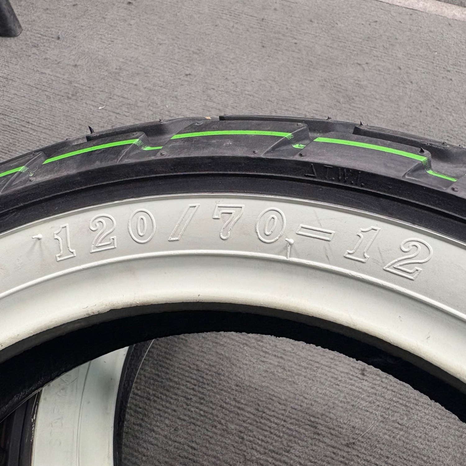 نوار سفید کناری (Whitewall) این لاستیک، آن را به گزینهای ایدهآل برای مدلهایی مثل Vespa Primavera، Sprint، LX و VXL تبدیل میکند؛ مخصوصاً برای موتورهایی که ظاهر کلاسیک و خاص اهمیت بالایی دارد.